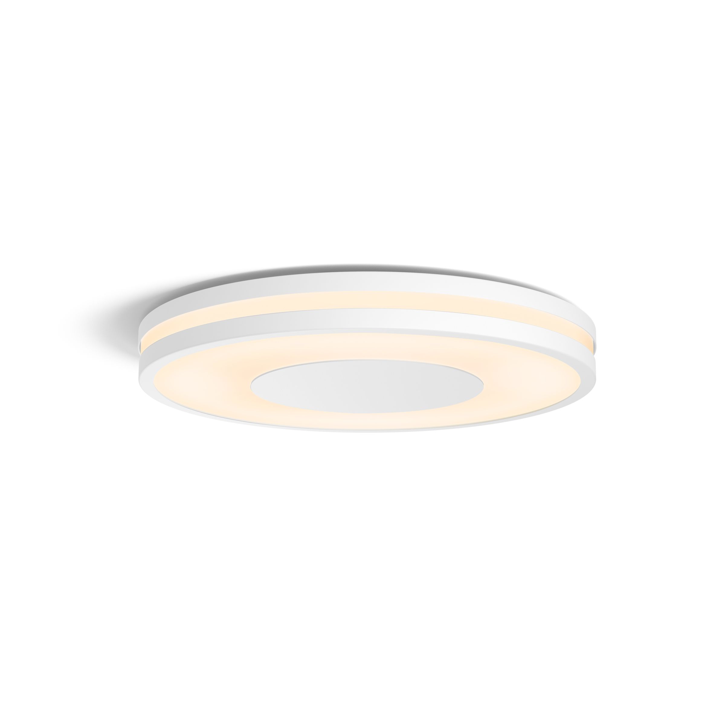 Enjoy a subtle glow with the Philips Hue White Ambiance Being ceiling light in white. Thin circles of aluminium cast warm-to-cool white light in three directions. Control instantly with the included Hue dimmer switch or Bluetooth. Unlock more smart lighting features with a Hue Bridge.
