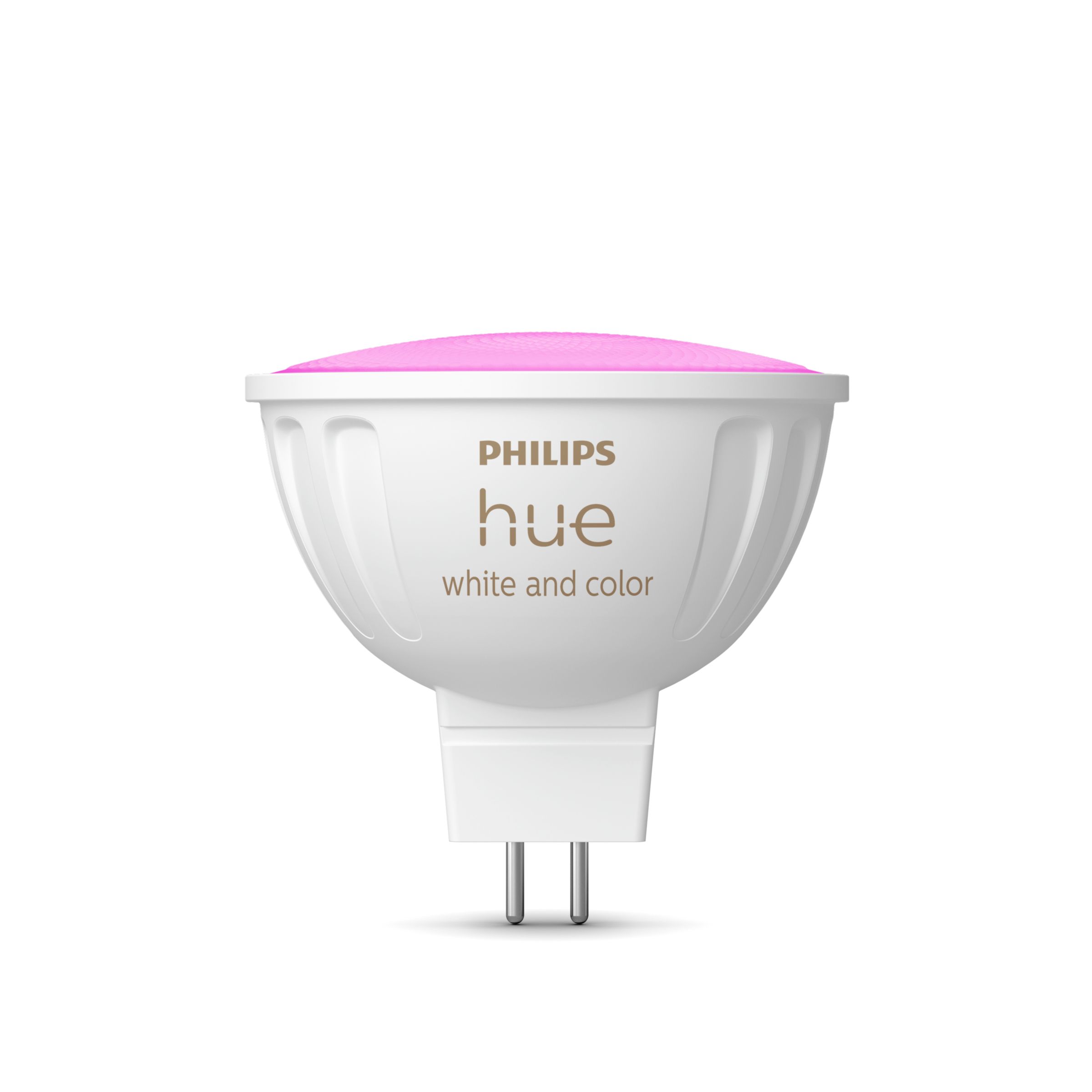 Upgrade your conventional spots with Hue MR16. Featuring a 12 V, bi-pin design suitable for most existing fittings, this MR16 bulb enables you to bring colour smart light to every corner of your home. Compatible with most transformers.¹