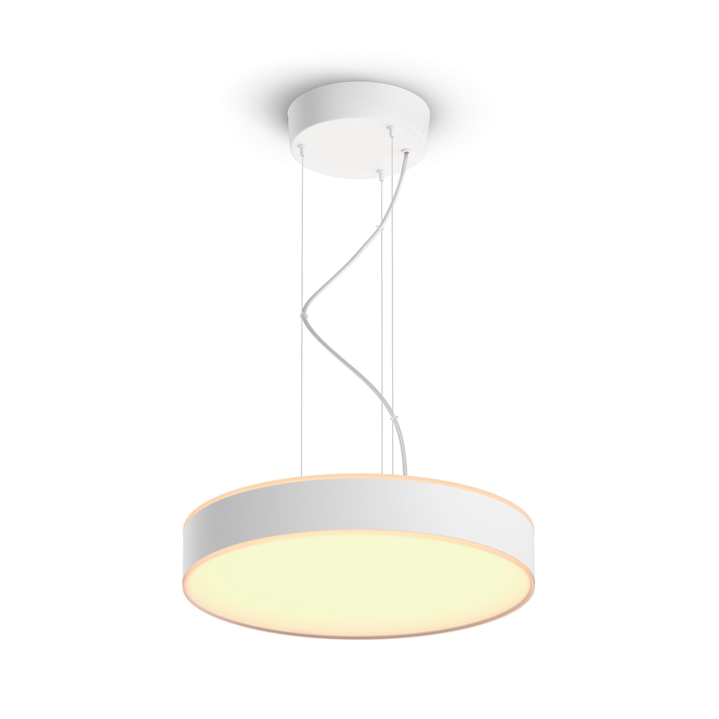 The soft upward glow and powerful downward light of the Enrave pendant ceiling light in white make it ideal for dining areas. Use its warm-to-cool white light for any task, such as helping with homework or setting the mood for dinner.
