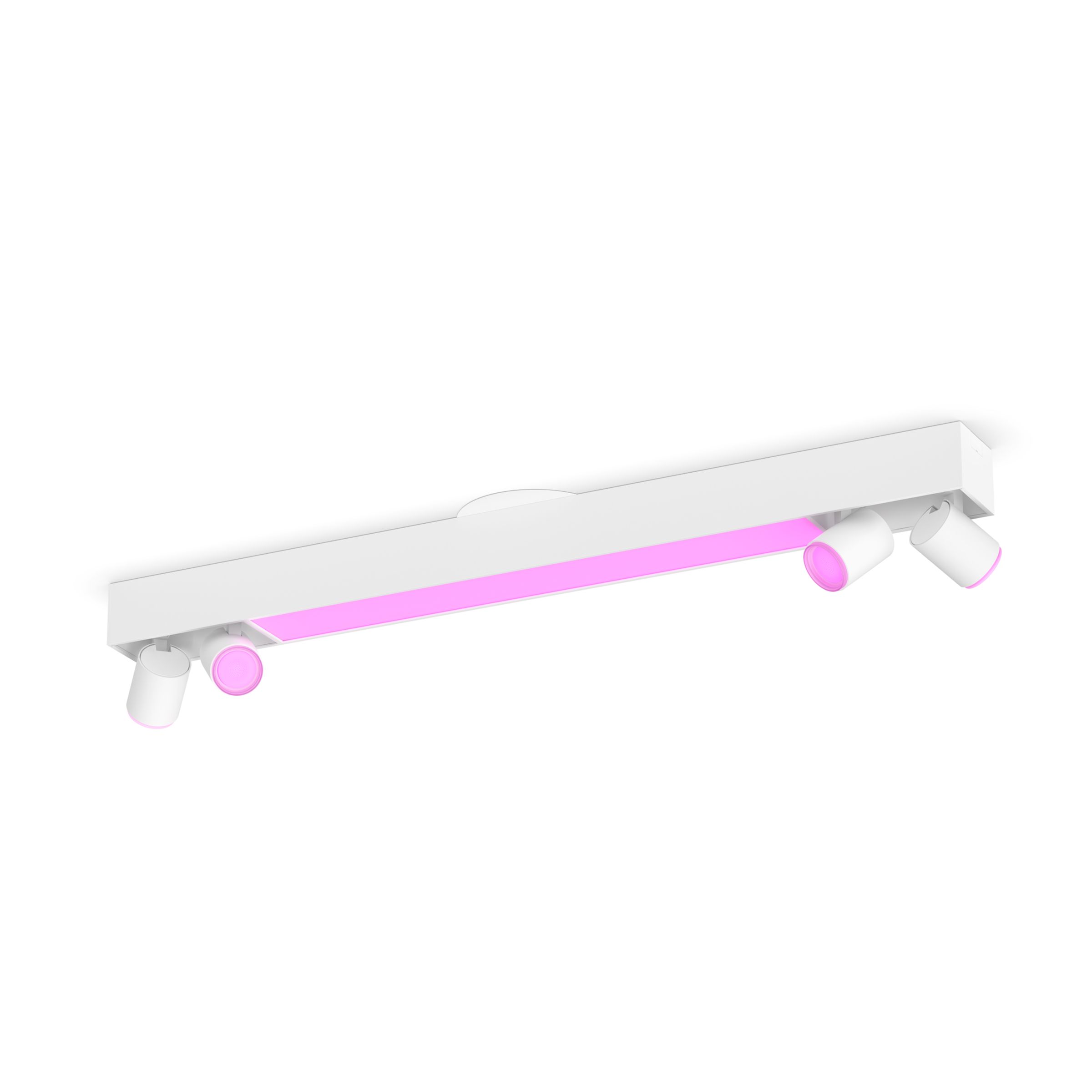 Get both functional and mood lighting in a single fixture. The white Centris has a fixed ceiling light and four spotlights that can be angled individually. Set each light in the fixture to any of millions of colors for a truly unique look.